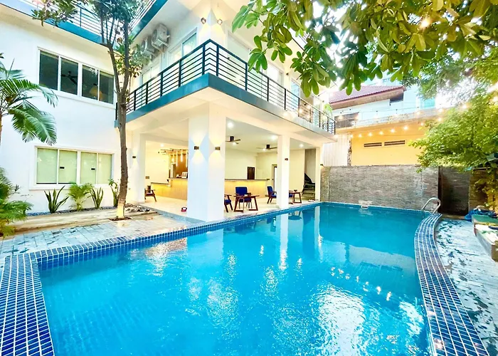 The 3-star boutique-style Sky Villa Bkk - Free Laundry - Pool & Chill Phnom Penh hotel, located just 1.5 km from the Independence Monument, offers an outdoor swimming pool, Wi-Fi throughout the property. This Phnom Penh hotel is approximately a 10-minute drive from PP train station and right near Diamond Island Convention & Exhibition Centre.